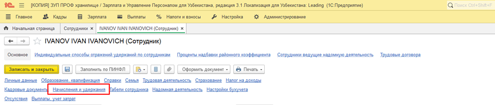 В новом релизе реализовано отображение документа «Приз, подарок» в разделе "Начисления и удержания" в карточке сотрудника.