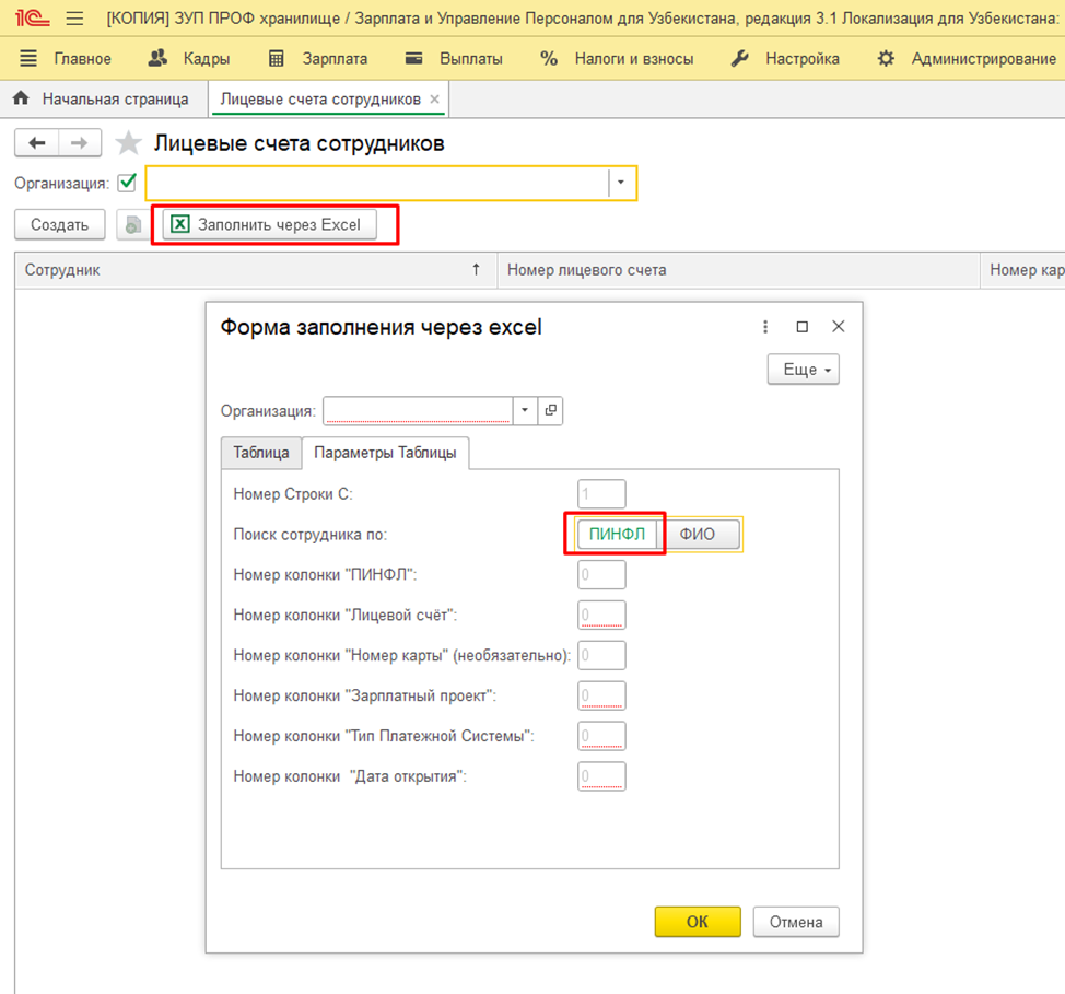 С текущего релиза реализована загрузка лицевых счетов по ПИНФЛ. Это поможет избежать ошибок, если в организации работают сотрудники с одинаковыми ФИО.