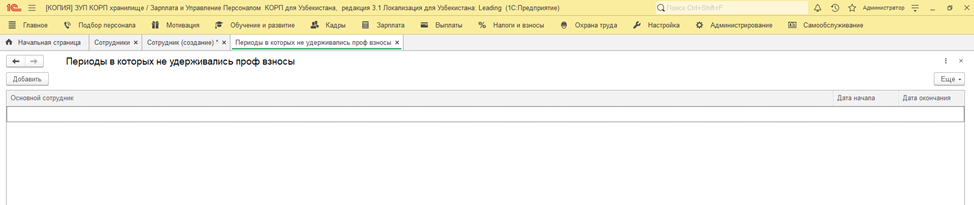 В текущем релизе доработан механизм удержания профсоюзных взносов в случаях, когда сотрудник изначально не уплачивал взносы, а затем принял решение начать их уплату. Чтобы программа начала удерживать взносы с определённого месяца без пересчёта удержаний за предыдущие периоды, необходимо в карточке сотрудника по ссылке «История удержания профвзносов» указать период, за который взносы не удерживались. После этого в поле «Не удерживать профсоюзные взносы» очистить дату и снять соответствующую галочку.