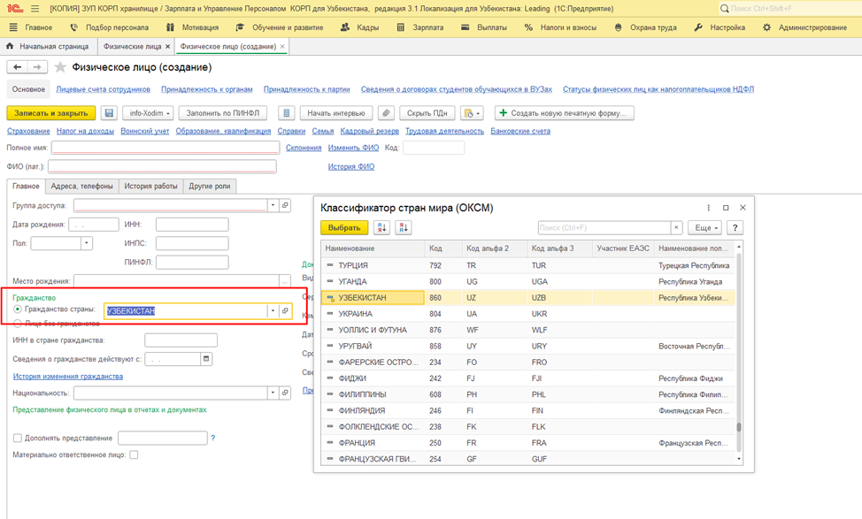 В новом релизе для профилей "Кадровик" и "Кадровик (без доступа к зарплате)" открыт доступ к «Классификатору стран мира» в справочнике физических лиц при выборе гражданства.